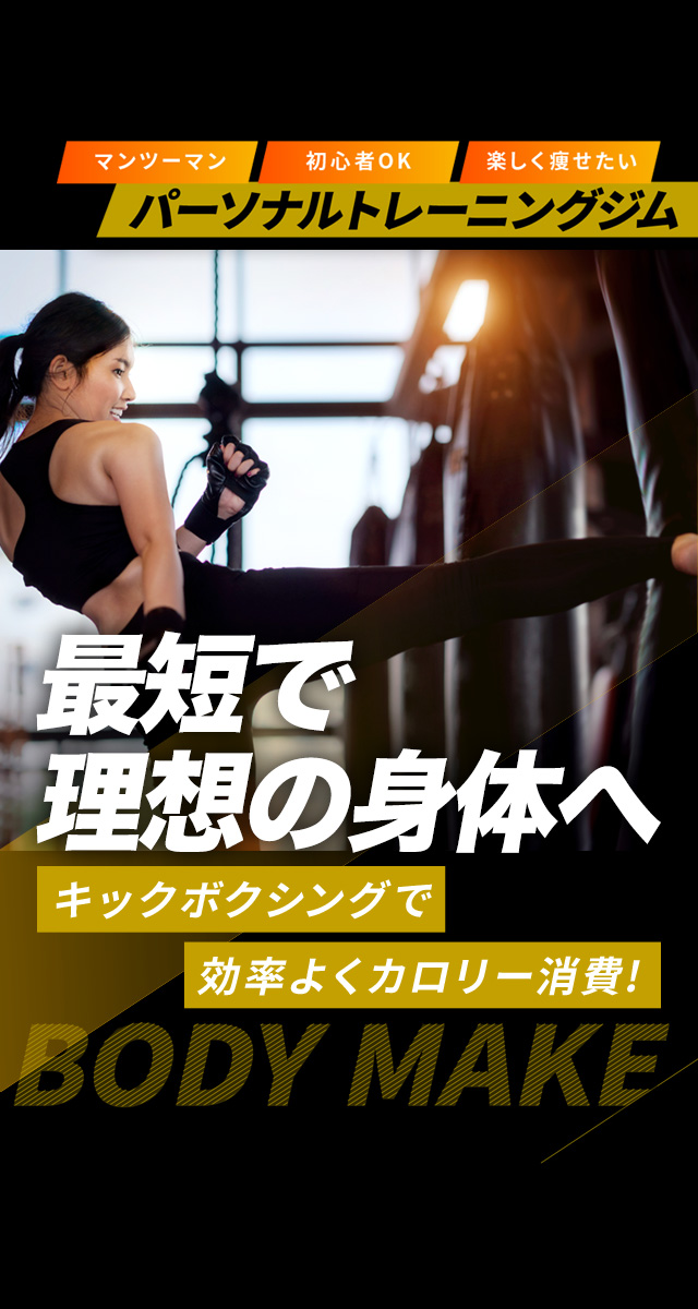 コンセプトに合わせたカラダづくりの実現を信頼できるキックボクシングで 理想のカラダへ導くことを重視しております。